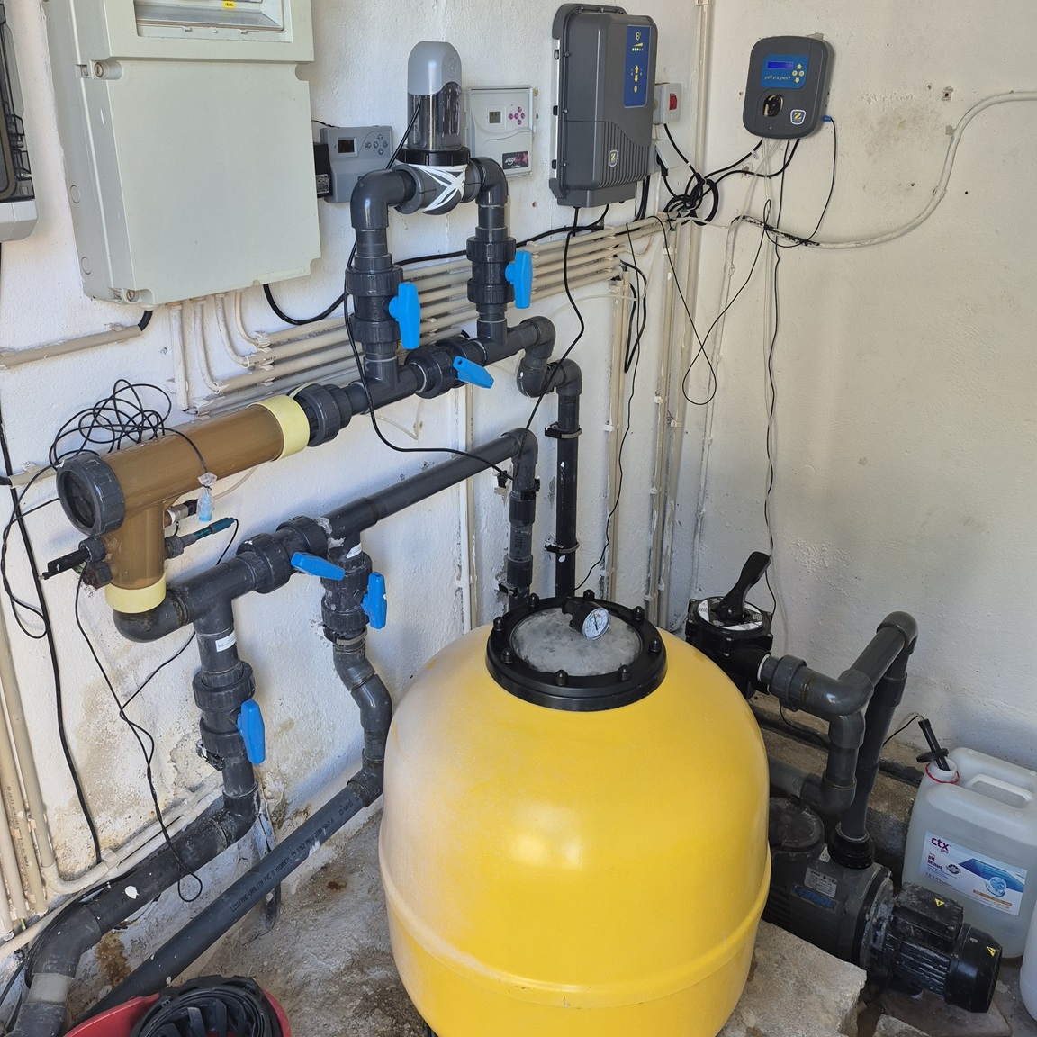 Instalação e afinação de sistemas de filtração e bombagem, substituição de areia ou vidro filtrante, calibração de sondas de pH, manutenção de válvulas e coletores, deteção e reparação de perdas de água.